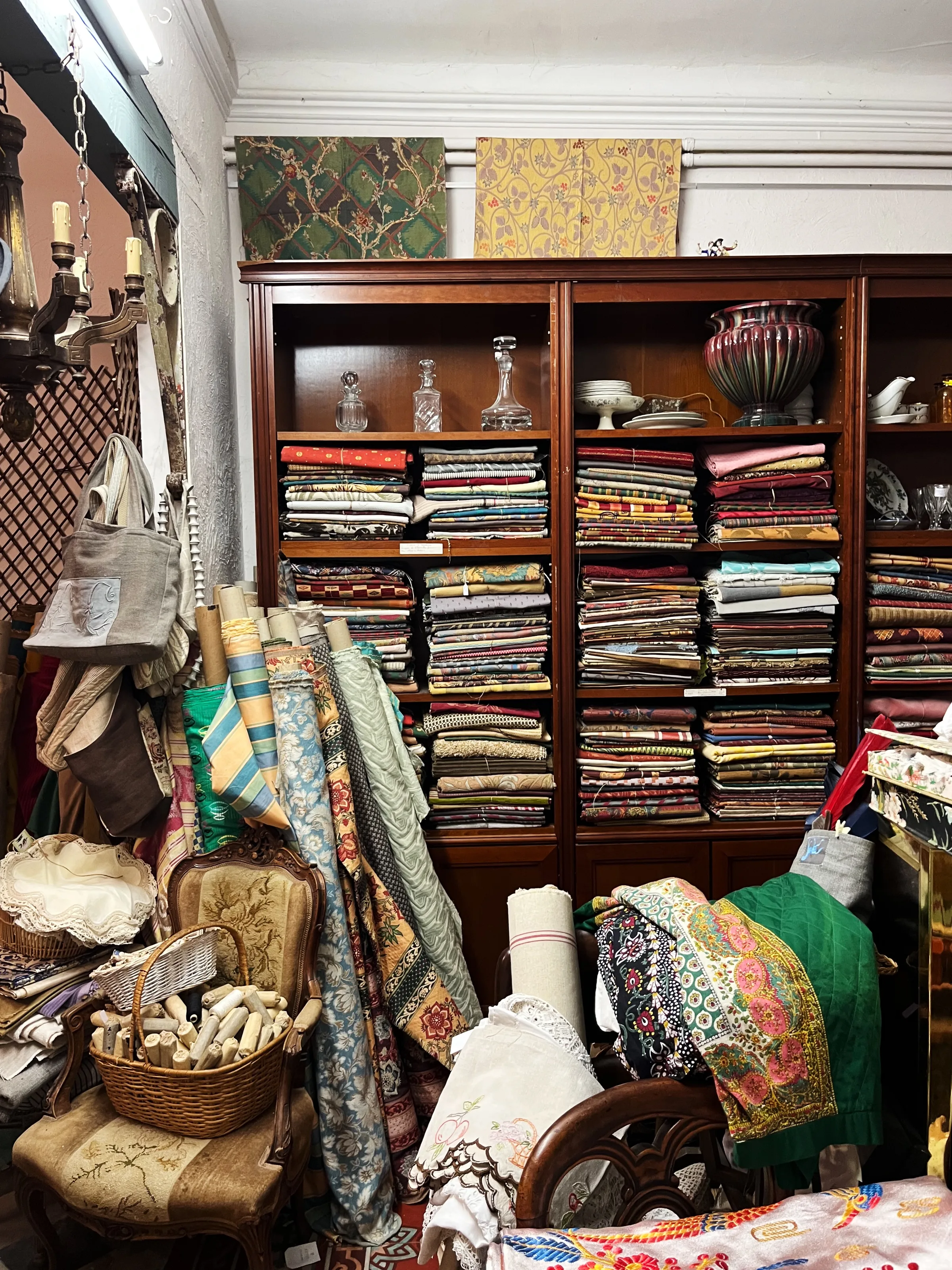 The potters of Apt and Moustiers-Sainte-Marie shape faïence ceramics in patterns unchanged since the seventeenth century — delicate birds, trailing vines, soft yellows and greens glazed by hand. In Roussillon, pigment makers still grind the ochre cliffs into powders that painters and plasterers use to color the walls of their homes. Weavers in Avignon produce the iconic indiennes — the printed cotton fabrics that have dressed Provençal tables and windows for centuries.